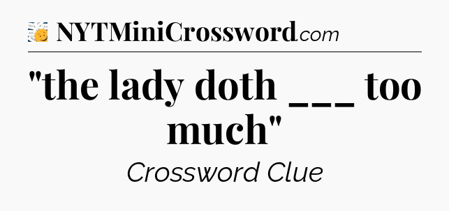 The Answer for “the lady doth ___ too much” – 7 Little Words Daily Puzzle is: