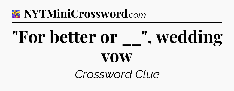 There is 1 possible answer for the crossword clue “”For better or __”, wedding vow”.