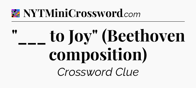 You’ve come to our website, which offers answers for the Crosswords With Friends Midi game. Earlier or later you will need help to pass this challenging game and our website is here to equip you with “___ to Joy” (Beethoven composition) Crossword Clue answers and other useful information like tips, solutions and cheats. Just use this page and you will quickly pass the level you stuck in the Crosswords With Friends Midi game. Besides this game Zynga has created also other not less fascinating games.