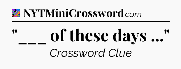 You’ve come to our website, which offers answers for the Crosswords With Friends Midi game. Earlier or later you will need help to pass this challenging game and our website is here to equip you with “___ of these days …” Crossword Clue answers and other useful information like tips, solutions and cheats. Just use this page and you will quickly pass the level you stuck in the Crosswords With Friends Midi game. Besides this game Zynga has created also other not less fascinating games.