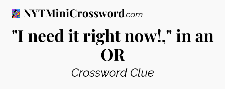 The Answer for “I need it right now!,” in an OR Crossword is: