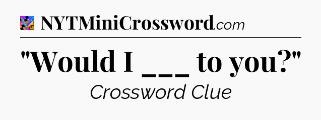 You’ve come to our website, which offers answers for the Crosswords With Friends Midi game. Earlier or later you will need help to pass this challenging game and our website is here to equip you with “Would I ___ to you?” Crossword Clue answers and other useful information like tips, solutions and cheats. Just use this page and you will quickly pass the level you stuck in the Crosswords With Friends Midi game. Besides this game Zynga has created also other not less fascinating games.