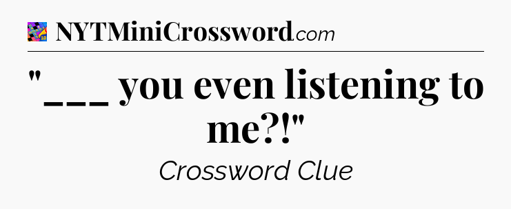 You’ve come to our website, which offers answers for the Crosswords With Friends Midi game. Earlier or later you will need help to pass this challenging game and our website is here to equip you with “___ you even listening to me?!” Crossword Clue answers and other useful information like tips, solutions and cheats. Just use this page and you will quickly pass the level you stuck in the Crosswords With Friends Midi game. Besides this game Zynga has created also other not less fascinating games.