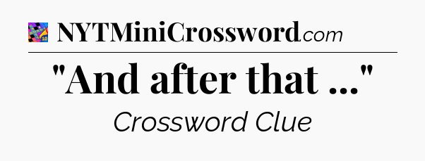 You’ve come to our website, which offers answers for the Crosswords With Friends Midi game. Earlier or later you will need help to pass this challenging game and our website is here to equip you with “And after that …” Crossword Clue answers and other useful information like tips, solutions and cheats. Just use this page and you will quickly pass the level you stuck in the Crosswords With Friends Midi game. Besides this game Zynga has created also other not less fascinating games.