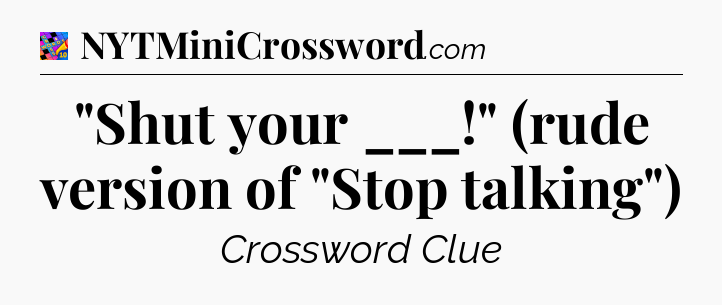 The Answer for “Shut your ___!” (rude version of “Stop talking”) Crossword is: