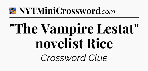 You’ve come to our website, which offers answers for the Crosswords With Friends Midi game. Earlier or later you will need help to pass this challenging game and our website is here to equip you with “The Vampire Lestat” novelist Rice Crossword Clue answers and other useful information like tips, solutions and cheats. Just use this page and you will quickly pass the level you stuck in the Crosswords With Friends Midi game. Besides this game Zynga has created also other not less fascinating games.