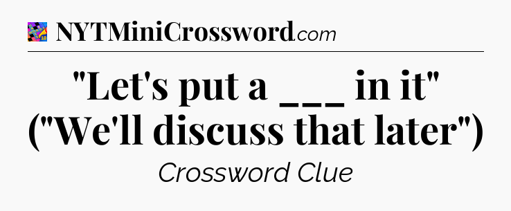 The Answer for “Let’s put a ___ in it” (“We’ll discuss that later”) Crossword is:
