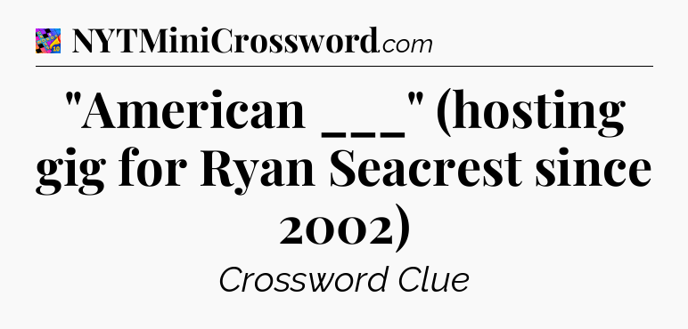 You’ve come to our website, which offers answers for the Crosswords With Friends Midi game. Earlier or later you will need help to pass this challenging game and our website is here to equip you with “American ___” (hosting gig for Ryan Seacrest since 2002) Crossword Clue answers and other useful information like tips, solutions and cheats. Just use this page and you will quickly pass the level you stuck in the Crosswords With Friends Midi game. Besides this game Zynga has created also other not less fascinating games.
