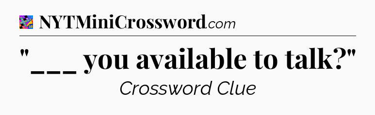 You’ve come to our website, which offers answers for the Crosswords With Friends Midi game. Earlier or later you will need help to pass this challenging game and our website is here to equip you with “___ you available to talk?” Crossword Clue answers and other useful information like tips, solutions and cheats. Just use this page and you will quickly pass the level you stuck in the Crosswords With Friends Midi game. Besides this game Zynga has created also other not less fascinating games.