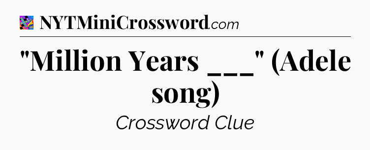 You’ve come to our website, which offers answers for the Crosswords With Friends Midi game. Earlier or later you will need help to pass this challenging game and our website is here to equip you with “Million Years ___” (Adele song) Crossword Clue answers and other useful information like tips, solutions and cheats. Just use this page and you will quickly pass the level you stuck in the Crosswords With Friends Midi game. Besides this game Zynga has created also other not less fascinating games.