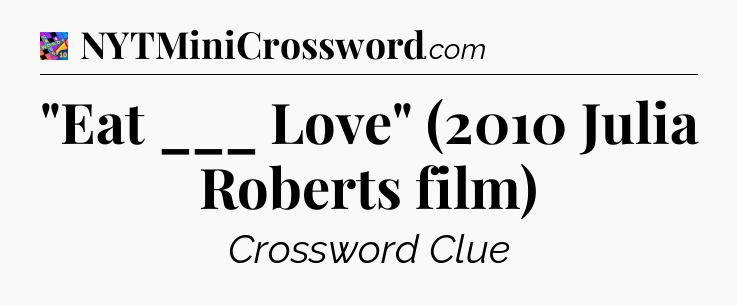 You’ve come to our website, which offers answers for the Crosswords With Friends Midi game. Earlier or later you will need help to pass this challenging game and our website is here to equip you with “Eat ___ Love” (2010 Julia Roberts film) Crossword Clue answers and other useful information like tips, solutions and cheats. Just use this page and you will quickly pass the level you stuck in the Crosswords With Friends Midi game. Besides this game Zynga has created also other not less fascinating games.