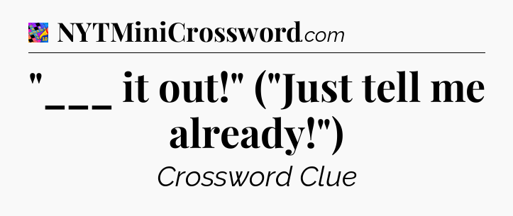 The Answer for “___ it out!” (“Just tell me already!”) Crossword is: