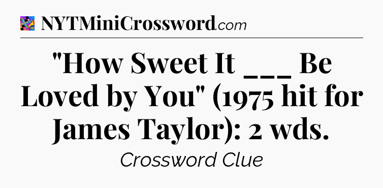 You’ve come to our website, which offers answers for the Crosswords With Friends Midi game. Earlier or later you will need help to pass this challenging game and our website is here to equip you with “How Sweet It ___ Be Loved by You” (1975 hit for James Taylor): 2 wds Crossword Clue answers and other useful information like tips, solutions and cheats. Just use this page and you will quickly pass the level you stuck in the Crosswords With Friends Midi game. Besides this game Zynga has created also other not less fascinating games.