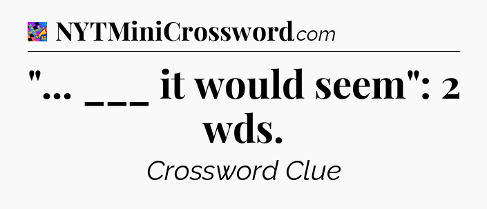 The Answer for “… ___ it would seem”: 2 wds Crossword is: