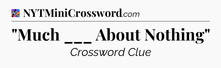 You’ve come to our website, which offers answers for the Crosswords With Friends Midi game. Earlier or later you will need help to pass this challenging game and our website is here to equip you with “Much ___ About Nothing” Crossword Clue answers and other useful information like tips, solutions and cheats. Just use this page and you will quickly pass the level you stuck in the Crosswords With Friends Midi game. Besides this game Zynga has created also other not less fascinating games.