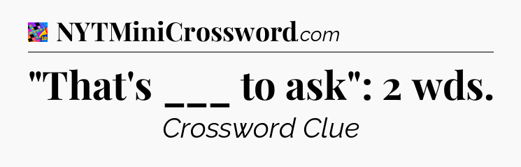 The Answer for “That’s ___ to ask”: 2 wds Crossword is: