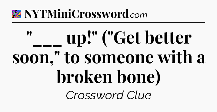 The Answer for “___ up!” (“Get better soon,” to someone with a broken bone) Crossword is: