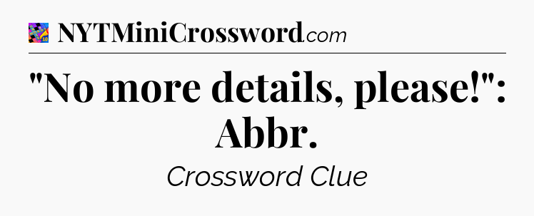 The Answer for “No more details, please!”: Abbr Crossword is: