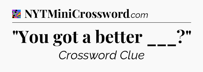 You’ve come to our website, which offers answers for the Crosswords With Friends Midi game. Earlier or later you will need help to pass this challenging game and our website is here to equip you with “You got a better ___?” Crossword Clue answers and other useful information like tips, solutions and cheats. Just use this page and you will quickly pass the level you stuck in the Crosswords With Friends Midi game. Besides this game Zynga has created also other not less fascinating games.