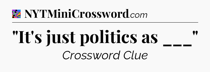 You’ve come to our website, which offers answers for the Crosswords With Friends Midi game. Earlier or later you will need help to pass this challenging game and our website is here to equip you with “It’s just politics as ___” Crossword Clue answers and other useful information like tips, solutions and cheats. Just use this page and you will quickly pass the level you stuck in the Crosswords With Friends Midi game. Besides this game Zynga has created also other not less fascinating games.