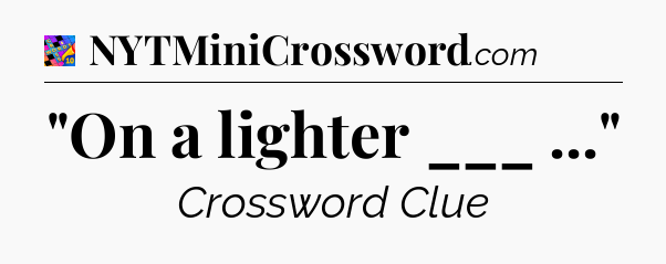 You’ve come to our website, which offers answers for the Crosswords With Friends Midi game. Earlier or later you will need help to pass this challenging game and our website is here to equip you with “On a lighter ___ …” Crossword Clue answers and other useful information like tips, solutions and cheats. Just use this page and you will quickly pass the level you stuck in the Crosswords With Friends Midi game. Besides this game Zynga has created also other not less fascinating games.