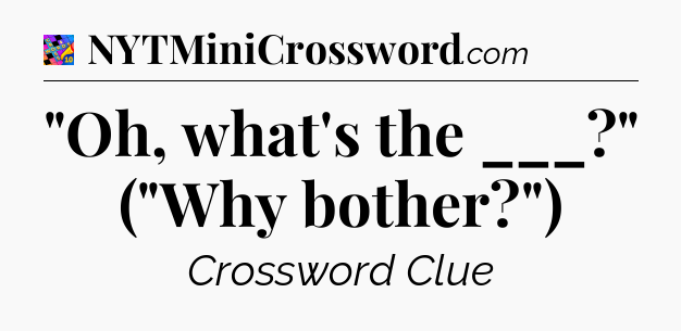 The Answer for “Oh, what’s the ___?” (“Why bother?”) Crossword is: