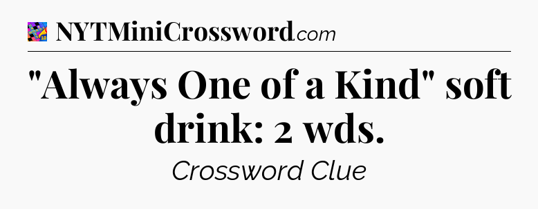 You’ve come to our website, which offers answers for the Crosswords With Friends Midi game. Earlier or later you will need help to pass this challenging game and our website is here to equip you with “Always One of a Kind” soft drink: 2 wds Crossword Clue answers and other useful information like tips, solutions and cheats. Just use this page and you will quickly pass the level you stuck in the Crosswords With Friends Midi game. Besides this game Zynga has created also other not less fascinating games.