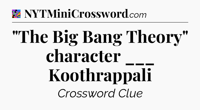 You’ve come to our website, which offers answers for the Crosswords With Friends Midi game. Earlier or later you will need help to pass this challenging game and our website is here to equip you with “The Big Bang Theory” character ___ Koothrappali Crossword Clue answers and other useful information like tips, solutions and cheats. Just use this page and you will quickly pass the level you stuck in the Crosswords With Friends Midi game. Besides this game Zynga has created also other not less fascinating games.