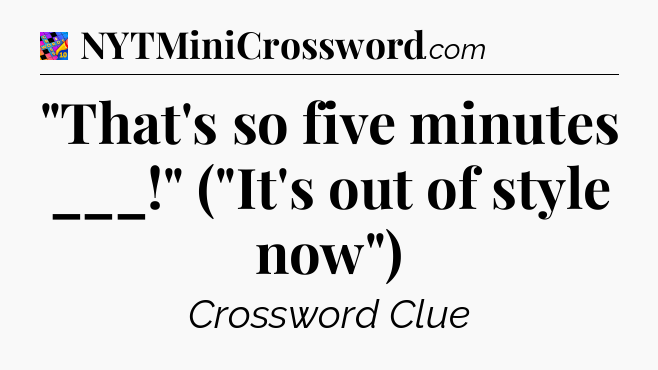 You’ve come to our website, which offers answers for the Crosswords With Friends Midi game. Earlier or later you will need help to pass this challenging game and our website is here to equip you with “That’s so five minutes ___!” (“It’s out of style now”) Crossword Clue answers and other useful information like tips, solutions and cheats. Just use this page and you will quickly pass the level you stuck in the Crosswords With Friends Midi game. Besides this game Zynga has created also other not less fascinating games.