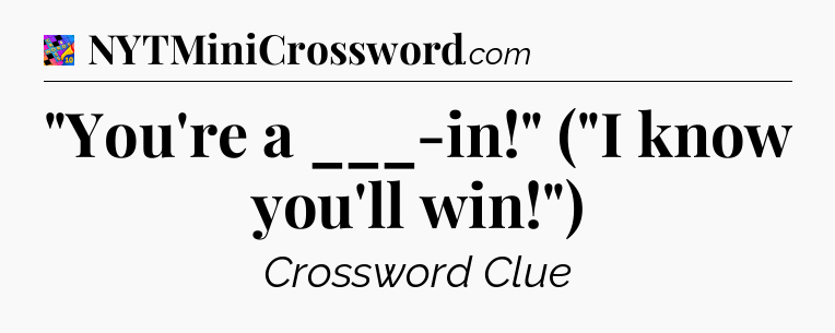 You’ve come to our website, which offers answers for the Crosswords With Friends Midi game. Earlier or later you will need help to pass this challenging game and our website is here to equip you with “You’re a ___-in!” (“I know you’ll win!”) Crossword Clue answers and other useful information like tips, solutions and cheats. Just use this page and you will quickly pass the level you stuck in the Crosswords With Friends Midi game. Besides this game Zynga has created also other not less fascinating games.