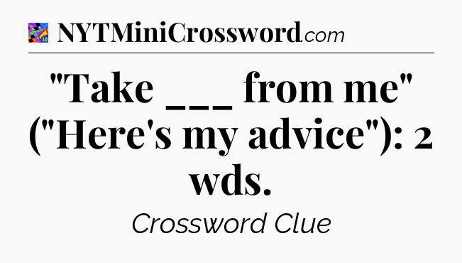 The Answer for “Take ___ from me” (“Here’s my advice”): 2 wds Crossword is: