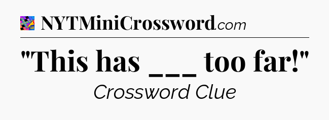 You’ve come to our website, which offers answers for the Crosswords With Friends Midi game. Earlier or later you will need help to pass this challenging game and our website is here to equip you with “This has ___ too far!” Crossword Clue answers and other useful information like tips, solutions and cheats. Just use this page and you will quickly pass the level you stuck in the Crosswords With Friends Midi game. Besides this game Zynga has created also other not less fascinating games.