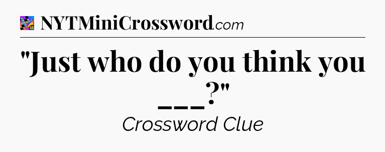 You’ve come to our website, which offers answers for the Crosswords With Friends Midi game. Earlier or later you will need help to pass this challenging game and our website is here to equip you with “Just who do you think you ___?” Crossword Clue answers and other useful information like tips, solutions and cheats. Just use this page and you will quickly pass the level you stuck in the Crosswords With Friends Midi game. Besides this game Zynga has created also other not less fascinating games.