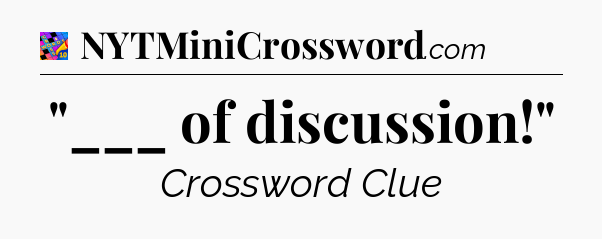 You’ve come to our website, which offers answers for the Crosswords With Friends Midi game. Earlier or later you will need help to pass this challenging game and our website is here to equip you with “___ of discussion!” Crossword Clue answers and other useful information like tips, solutions and cheats. Just use this page and you will quickly pass the level you stuck in the Crosswords With Friends Midi game. Besides this game Zynga has created also other not less fascinating games.