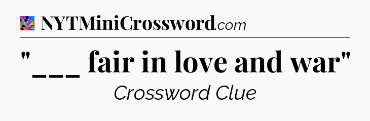 You’ve come to our website, which offers answers for the Crosswords With Friends Midi game. Earlier or later you will need help to pass this challenging game and our website is here to equip you with “___ fair in love and war” Crossword Clue answers and other useful information like tips, solutions and cheats. Just use this page and you will quickly pass the level you stuck in the Crosswords With Friends Midi game. Besides this game Zynga has created also other not less fascinating games.