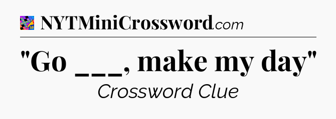 You’ve come to our website, which offers answers for the Crosswords With Friends Midi game. Earlier or later you will need help to pass this challenging game and our website is here to equip you with “Go ___, make my day” Crossword Clue answers and other useful information like tips, solutions and cheats. Just use this page and you will quickly pass the level you stuck in the Crosswords With Friends Midi game. Besides this game Zynga has created also other not less fascinating games.