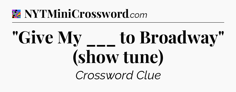 You’ve come to our website, which offers answers for the Crosswords With Friends Midi game. Earlier or later you will need help to pass this challenging game and our website is here to equip you with “Give My ___ to Broadway” (show tune) Crossword Clue answers and other useful information like tips, solutions and cheats. Just use this page and you will quickly pass the level you stuck in the Crosswords With Friends Midi game. Besides this game Zynga has created also other not less fascinating games.