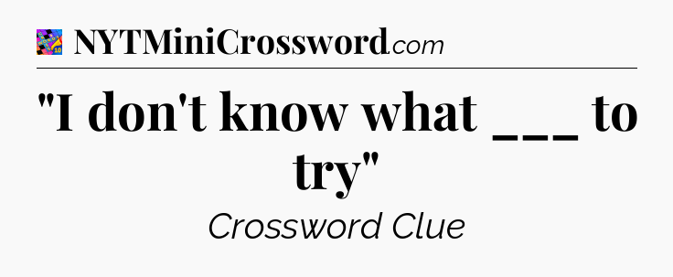 You’ll be glad to know, that your search for tips for Crosswords With Friends Mini game is ending right on this page. With this website, you will not need any other help to pass difficult task or level. It helps you with “I don’t know what ___ to try” Crossword Clue answers, some additional solutions and useful tips and tricks. Using our website you will be able to quickly solve and complete Crosswords With Friends Mini game which was created by the Zynga developer together with other games.