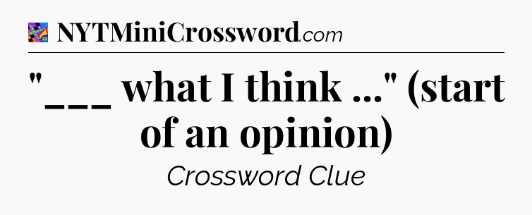 You’ll be glad to know, that your search for tips for Crosswords With Friends Mini game is ending right on this page. With this website, you will not need any other help to pass difficult task or level. It helps you with “___ what I think …” (start of an opinion) Crossword Clue answers, some additional solutions and useful tips and tricks. Using our website you will be able to quickly solve and complete Crosswords With Friends Mini game which was created by the Zynga developer together with other games.