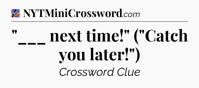 You’ll be glad to know, that your search for tips for Crosswords With Friends Mini game is ending right on this page. With this website, you will not need any other help to pass difficult task or level. It helps you with “___ next time!” (“Catch you later!”) Crossword Clue answers, some additional solutions and useful tips and tricks. Using our website you will be able to quickly solve and complete Crosswords With Friends Mini game which was created by the Zynga developer together with other games.