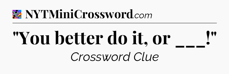 You’ll be glad to know, that your search for tips for Crosswords With Friends Mini game is ending right on this page. With this website, you will not need any other help to pass difficult task or level. It helps you with “You better do it, or ___!” Crossword Clue answers, some additional solutions and useful tips and tricks. Using our website you will be able to quickly solve and complete Crosswords With Friends Mini game which was created by the Zynga developer together with other games.