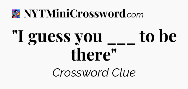 You’ll be glad to know, that your search for tips for Crosswords With Friends Mini game is ending right on this page. With this website, you will not need any other help to pass difficult task or level. It helps you with “I guess you ___ to be there” Crossword Clue answers, some additional solutions and useful tips and tricks. Using our website you will be able to quickly solve and complete Crosswords With Friends Mini game which was created by the Zynga developer together with other games.