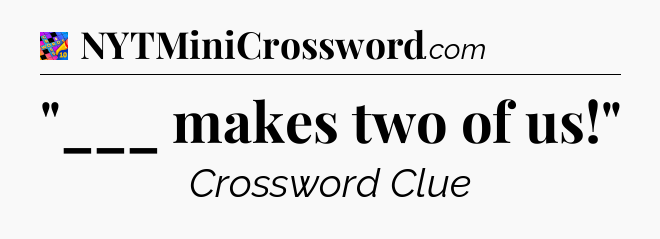 You’ll be glad to know, that your search for tips for Crosswords With Friends Mini game is ending right on this page. With this website, you will not need any other help to pass difficult task or level. It helps you with “___ makes two of us!” Crossword Clue answers, some additional solutions and useful tips and tricks. Using our website you will be able to quickly solve and complete Crosswords With Friends Mini game which was created by the Zynga developer together with other games.