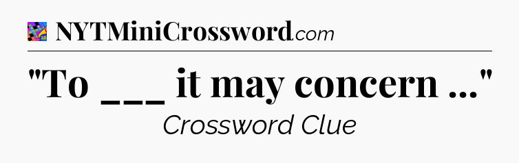 You’ll be glad to know, that your search for tips for Crosswords With Friends Mini game is ending right on this page. With this website, you will not need any other help to pass difficult task or level. It helps you with “To ___ it may concern …” Crossword Clue answers, some additional solutions and useful tips and tricks. Using our website you will be able to quickly solve and complete Crosswords With Friends Mini game which was created by the Zynga developer together with other games.