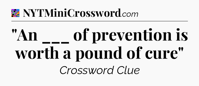 The Answer for “An ___ of prevention is worth a pound of cure” Crossword is: