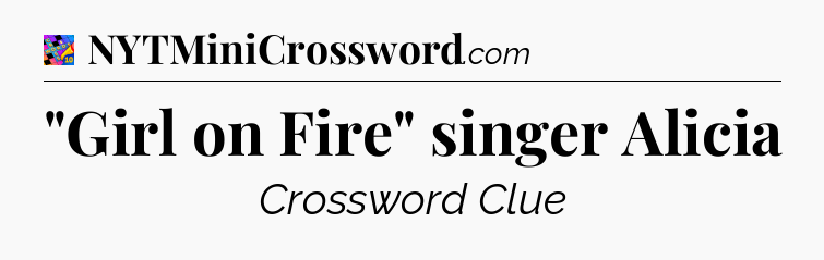 You’ll be glad to know, that your search for tips for Crosswords With Friends Mini game is ending right on this page. With this website, you will not need any other help to pass difficult task or level. It helps you with “Girl on Fire” singer Alicia Crossword Clue answers, some additional solutions and useful tips and tricks. Using our website you will be able to quickly solve and complete Crosswords With Friends Mini game which was created by the Zynga developer together with other games.