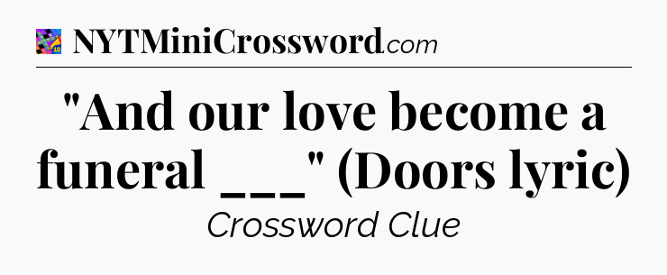 You’ll be glad to know, that your search for tips for Crosswords With Friends Mini game is ending right on this page. With this website, you will not need any other help to pass difficult task or level. It helps you with “And our love become a funeral ___” (Doors lyric) Crossword Clue answers, some additional solutions and useful tips and tricks. Using our website you will be able to quickly solve and complete Crosswords With Friends Mini game which was created by the Zynga developer together with other games.