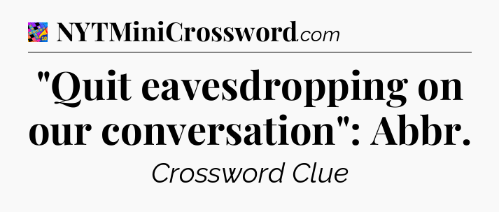 You’ll be glad to know, that your search for tips for Crosswords With Friends Mini game is ending right on this page. With this website, you will not need any other help to pass difficult task or level. It helps you with “Quit eavesdropping on our conversation”: Abbr Crossword Clue answers, some additional solutions and useful tips and tricks. Using our website you will be able to quickly solve and complete Crosswords With Friends Mini game which was created by the Zynga developer together with other games.