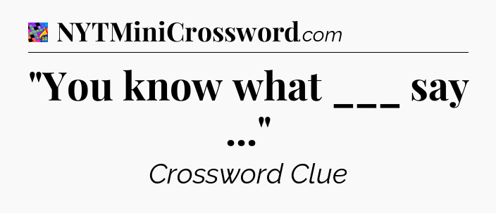 You’ll be glad to know, that your search for tips for Crosswords With Friends Mini game is ending right on this page. With this website, you will not need any other help to pass difficult task or level. It helps you with “You know what ___ say …” Crossword Clue answers, some additional solutions and useful tips and tricks. Using our website you will be able to quickly solve and complete Crosswords With Friends Mini game which was created by the Zynga developer together with other games.