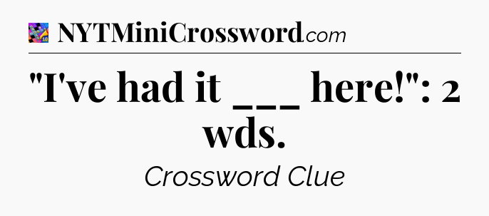 You’ll be glad to know, that your search for tips for Crosswords With Friends Mini game is ending right on this page. With this website, you will not need any other help to pass difficult task or level. It helps you with “I’ve had it ___ here!”: 2 wds Crossword Clue answers, some additional solutions and useful tips and tricks. Using our website you will be able to quickly solve and complete Crosswords With Friends Mini game which was created by the Zynga developer together with other games.